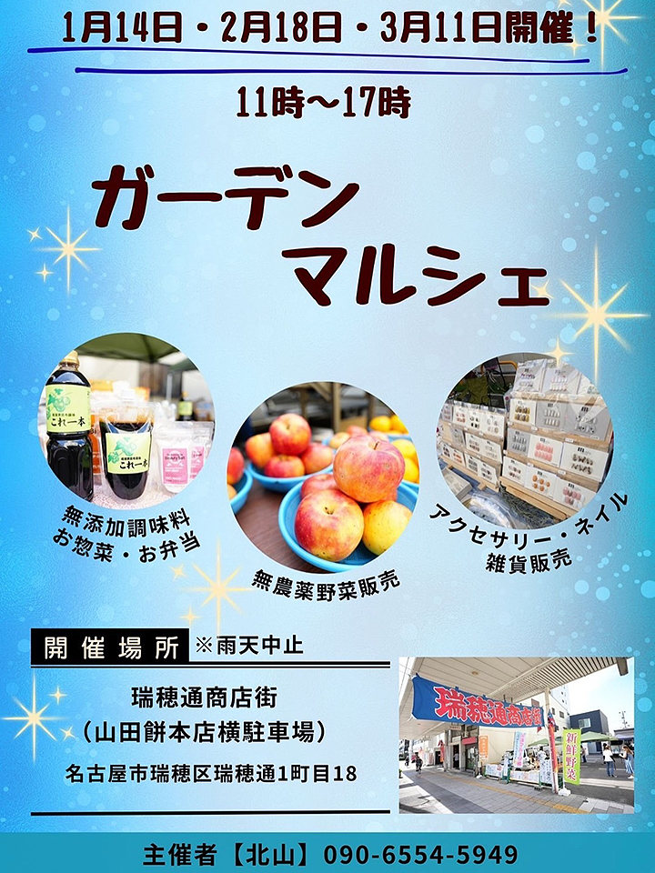 瑞穂通商店街で、心と体にやさしい「ガーデンマルシェ」を開催します。