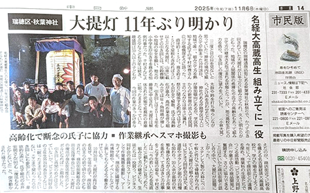 地域の絆が新聞に〜大提灯プロジェクトが中日新聞で紹介されました〜