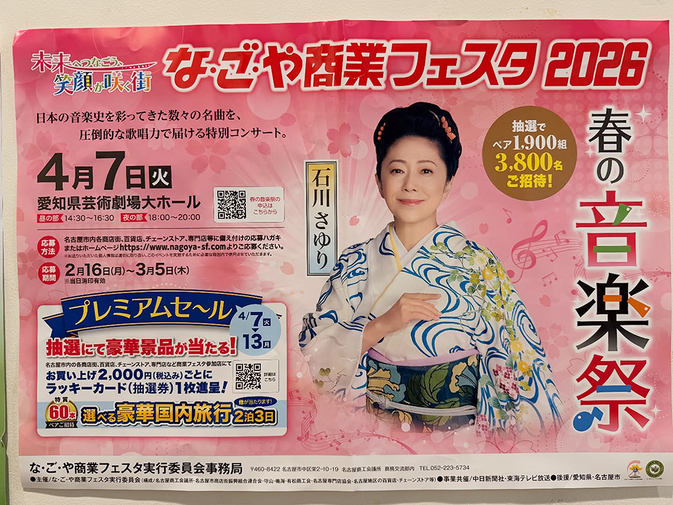 なごや商業フェスタ2026 春の音楽祭 石川さゆり特別コンサート開催